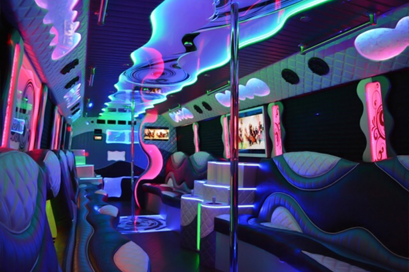 This beautiful 36 passenger vehicle is perfect for making a grand entrance to any place in the heart of Chicago. This lovely and fun party bus keeps the party going all night with custom features that you won't find with any other party bus company out there. Your party will be sure to remain in the memories of those around you for the rest of their lives if you rent this beautiful 36 passenger party bus for your next big event!